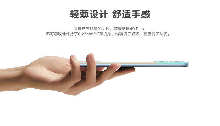 值得一提的是,荣耀畅玩40 Plus在搭载6000mAh大电池的同时,还将机身厚度控制在8.27mm,重量也仅有198g,是当前市面上搭载6000mAh电池手机中最轻薄的。