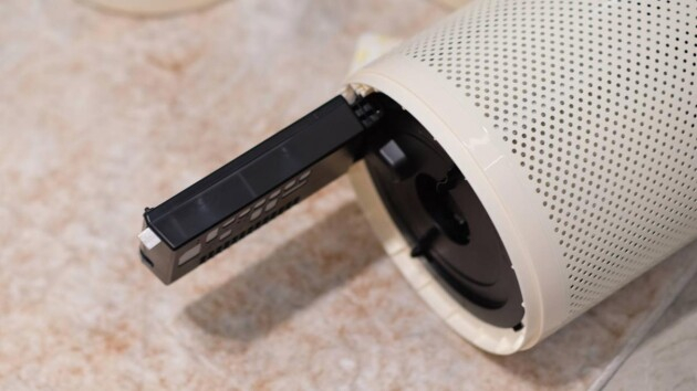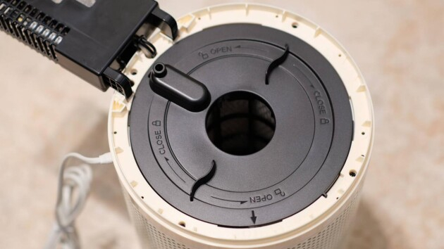 开关机、模式变换、风力调整、联网、自检、清洁等机器所有的操作都可以通过顶部的触摸按键操作实现,同时还内置了感应式的环状控制器,沿主机边缘轻轻滑动,顺时针增大风量,逆时针减小风量,让我想到了 B&O A9 上的操作,非常方便与优雅。