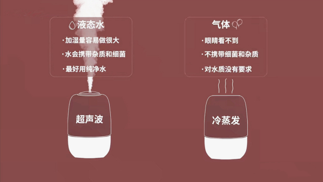 讲了这么多,简单总结“有水雾的加湿器=低效加湿、无水雾的加湿器=高效加湿”,在选购加湿器的时候注意要冷蒸发,要好清洗水箱,要紫外线杀菌,要加湿量足够大的。