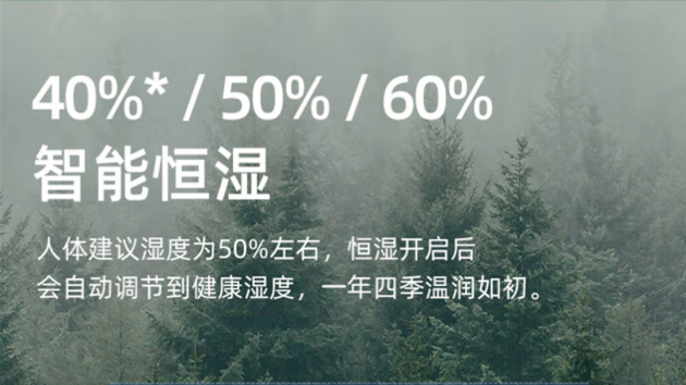 在世界卫生组织公布的健康住宅标准中介绍,相对湿度为 40%~60%时,人体感觉最为舒适,所以一般的室内湿度应该保持在 50%左右。LIFAair 润宝宝加湿器集成多维传感单元配合 10000+小时调校的智能算法智能控制风机转速、PTC 工作状态,将房间维持在 50%的适宜湿度,同时还可切换 60%,享受更湿润的空气。