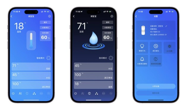 智能化是家电行业发展的一大趋势,LIFAair 润宝宝加湿器支持 APP 远程控制和 OTA 在线升级,下班回家前提前打开加湿器,回家后感受温润舒适家居环境,同时还能通过 APP 实时了解家中温湿度情况,OTA 在线升级,越用越智能。