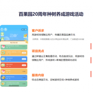 更好的游戏体验、更高的排名、更多的优惠券奖励,这些都是驱动用户参与和留存的利益点。在移卡游戏打造的百果园游戏化案例中,通过在小程序中种树,用户每周来签到能获得一些水滴和养料,从一个树苗到长成一棵树,用户会为了让树长得更好更快,需要获取更多水滴,自然就会带来更多登录、互动和分享裂变。