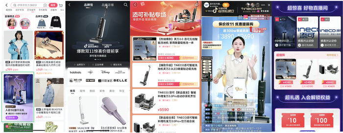 活动期间,抖音商城设置商城卡位banner、品牌馆置顶logo墙等点位,全方位露出品牌爆款及添可抖音电商超级品牌日活动。此外,添可举办抖音商城超值购补贴专场,通过点击直播间右上角banner便可进入添可抖音商城超值购频道,为消费者提供补贴和服务保障的同时,也可以为品牌承接搜索引流带来的流量转化。