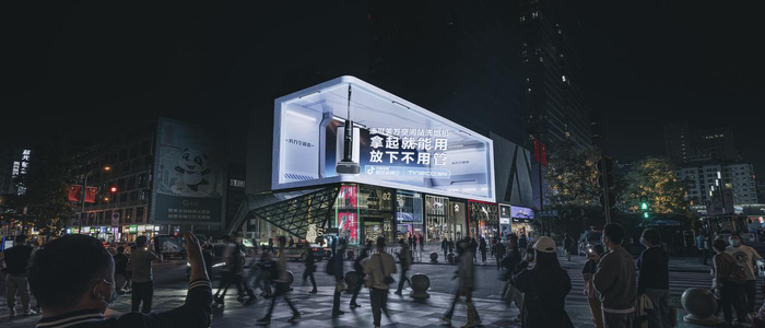 除线上打造超级达人种草团外,10月17日-10月23日,新品芙万station空间站吸拖洗一体机登上成都太古里3D大屏,“空间站”的场景设计向用户有效传达了即将发售的新品,添可智能洗地机芙万station空间站吸拖洗一体机的概念。3D大屏展示出的震撼效果,引起众人驻足围观,争相拍摄大屏。此外还有梯媒诸多点位,覆盖北上广杭州苏州,为活动提升曝光量。