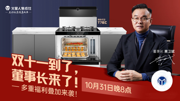 一年一度的双十一即将到来,今年火星人持续打造流量工厂项目,在抖音平台开辟新电商模式——抖音直播卖货。先后邀请火星人市场总监、销售总监、渠道总监等树立总部IP形象。10月31号晚上8点,火星人董事长黄卫斌先生将亲自上阵,直播卖货送福利。关注抖音火星人集成灶官方直播间(抖音号:595500822),回馈客户多重福利。