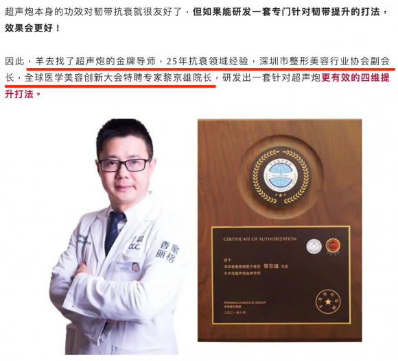 深圳香蜜丽格黎京雄院长联手新氧,推出新氧优享超声炮“四维提升打法”