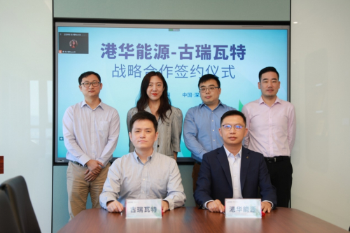 港华智慧能源高级副总裁张晶、古瑞瓦特副总裁乔鑫分别代表双方签约。香港中华煤气首席投资总裁陈英龙、古瑞瓦特总裁丁永强线上参加会议,并与恒基中国助理投资总监、港华智慧能源高级副总裁宋翔,以及古瑞瓦特中南区销售总监覃猛等见证签约。