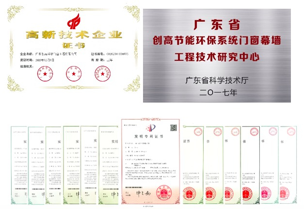 创高门窗持续以创新为核心驱动力,掌握多项门窗核心技术,拥有超100人的高层次科研团队,取得了多项亮眼的技术突破,创新能力和研发实力处于行业前列。2017年连续获评国家高新技术企业、广东省工程技术研究中心,2020年获建筑装饰行业科学技术奖,2021年获评佛山市企业技术中心、中国门窗行业金奖,创高目前拥有47项国家专利,这些荣耀与肯定,都是对创高门窗综合实力的充分肯定。
