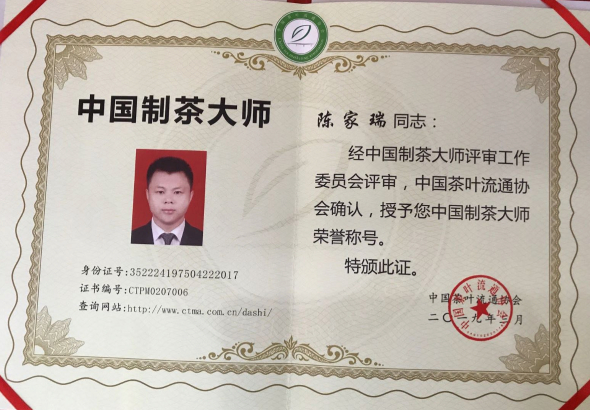 而陈家瑞本人,更是先后荣获“宁德市第六批非物质文化遗产项目代表性传承人”、“国家一级评茶师”、“中国制茶大师”、“十佳匠心茶人”、“闽茶之星”等荣誉。
