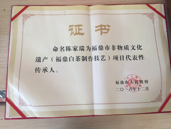 而品牌创始人陈家瑞则更好地诠释并继承了陈氏一族的“匠人精神”,秉承“匠心制茶”的工艺理念,方有了如今瑞达白茶的一系列成就。其中最有力的证明便是陈家瑞荣获“福鼎市级福鼎白茶制作技艺非物质遗产代表性传承人”奖项。