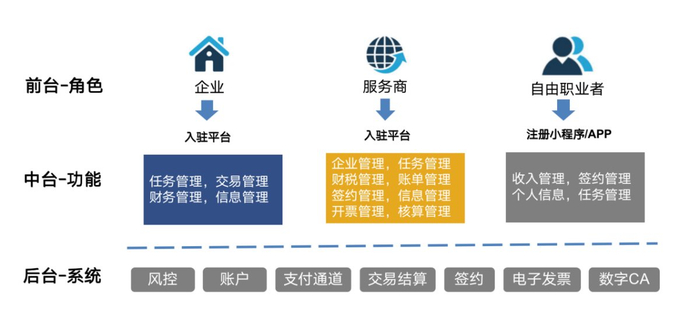 • 系统平台利用生态优势资源形成行业平台解决方案,为外部用工企业及财税服务商赋能。