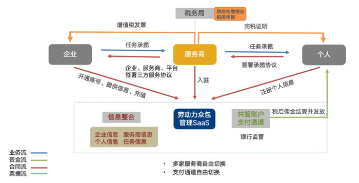 劳动力众包管理SaaS——一站式企业复合用工技术平台,为灵活用工企业、财税服务商和自由职业者提供技术平台服务