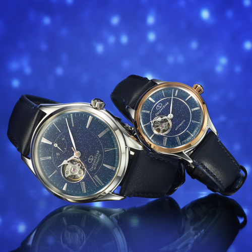 执子之手,无惧时间考验。Orient Star东方星70周年星云限量款情侣对表RE-AT0205L00B/RE-ND0014L00B,精致星云表盘如夜空繁星点点,充满浩瀚星空的广阔神秘。采用矿物质玻璃表镜,光泽莹润,读时清晰。