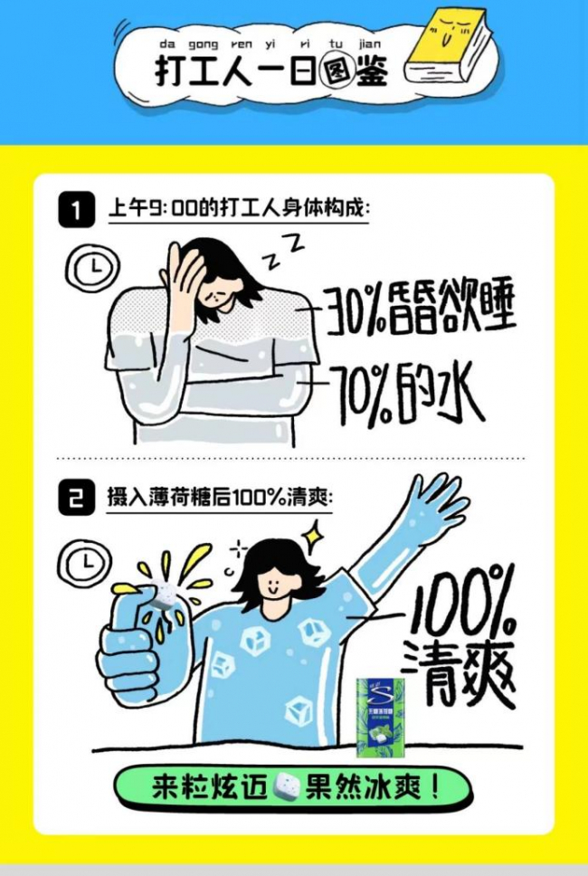 活动对打工人的关怀并未停留在线上,活动中后期,含有炫迈无糖薄荷糖、随行杯等醒神神器的「打工人加油包」惊喜空降上海市中心,为打工人们送去实体礼包、加油鼓气。
