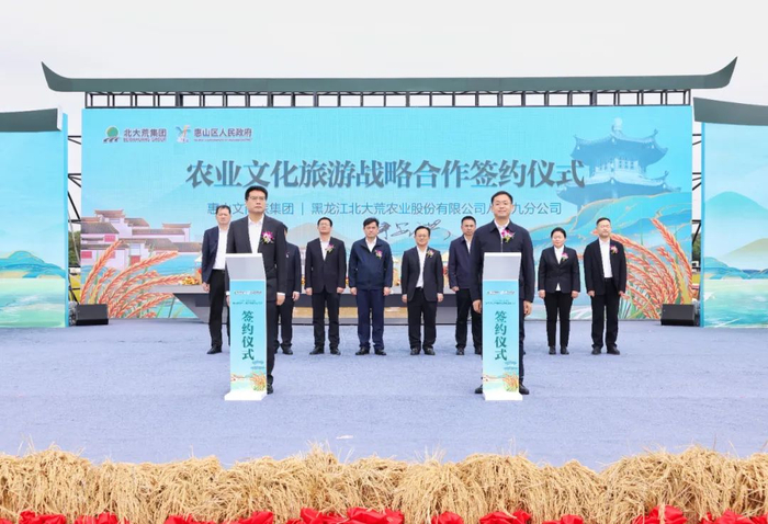 惠山文商旅集团与北大荒集团黑龙江八五九农场有限公司党委书记、黑龙江北大荒农业股份有限公司八五九分公司总经理尹显洪签署农业文化旅游战略合作。