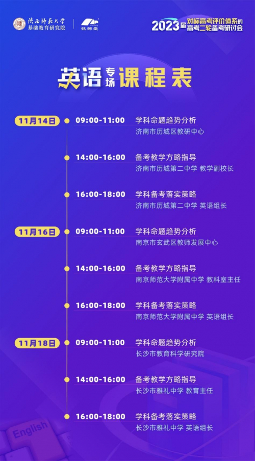 全国各教科院(教研室)语数英学科教研员、各高中教学校长、年级主任语数英学科(备课)组长及教师。