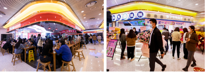 “重庆排队王”的楠火锅,牛油重料的地道重庆味,一秒穿越到山城的市井老巷,响当当的名气甚至还未开业就已经吸引不少关注;主打生蚝海鲜自助的蚝船长,不仅食材多样新鲜,身穿水手服的店员小姐姐也成为一大亮点;国潮点心的代表泸溪河,也早已名声在外,以精选用料和超赞的口感虏获食客芳心。此外,还有人称“麻辣烫天花板”的文立新秤盘麻辣烫,好吃到几乎人手一份的夸父炸串,每个女生都不得不爱的和气桃桃、沪上阿姨,健康新食尚都酷味、老乡鸡、牛汤哥,“下饭神奇”桃娘小火锅、鱼你在一起等等。