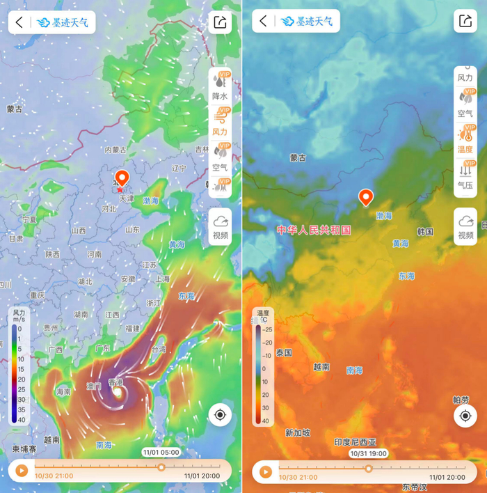天气情况以地图形式显示,用户可以直观生动的观测到天气的即时动态,亲眼看到风速流动方向,当温度越高时,颜色会渐渐转为暖色系,风速越强时,线条就会动得越快。直接在地图上拖拽,还可以移动到想要观看的位置,更全面地了解许多天气预报中没有的数据细节,让天气预报不再只是一个无法感知的数字。