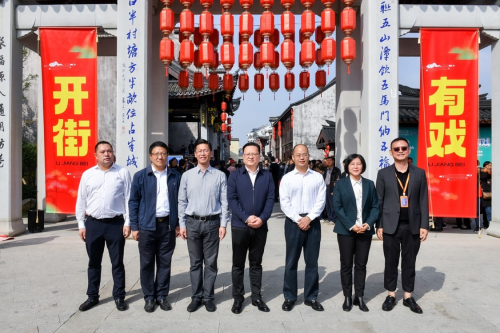 开街当日,新昌县副县长吕田,新昌县宣传部长钱王炜,新昌县副主任王敏慧,新昌县政协副主席祝志芳,新昌县城投集团党委书记、董事长、总经理吴康,新昌县城投集团党委委员、副总经理张平,浙江文创集团董事长、杭州市文化创意协会会长钱峰,及新昌县委办、县府办、县纪委、县委宣传部、发政局、自然资源局、建设局、商务局、文旅局、综合执法局分管负责人,南明街道、城投集团、浙江文创集团相关负责人,相关合作机构、媒体记者等领导嘉宾共同见证此次浙东城市更新浪潮里最具活力的文创新消费策源地诞生。