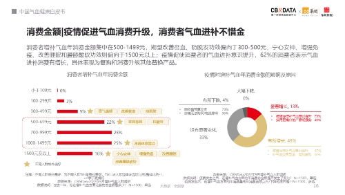 疫情以来,超六成的消费者表示气血健康消费有所增长。增补气血年消费金额集中在500-1499元,有16%的消费者年消费金额在1500元及以上,TA们的主诉求是宁心安神、增强免疫、改善睡眠以及改善腰膝酸软。