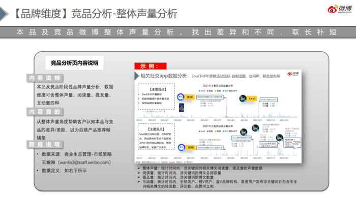 ☉ 声量数据,从整体声量角度帮助客户认知本品与竞品的差距,为后续产品宣传做铺垫;