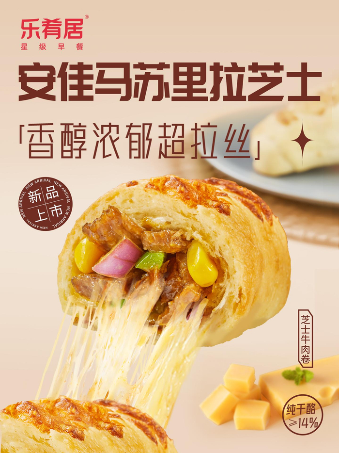 不同于市面上一些仅有再制干酪做芝士原料的芝士卷产品,乐肴居芝士卷选择的是安佳马苏里拉芝士,纯干酪添加量高达14%,不少人都表示“很久没吃到拉丝效果这么好的芝士卷了”。而且,市面上很多芝士卷用的都是酥皮、卷饼皮,加热后或者放久了都易干易裂,但乐肴居芝士卷选用的是山姆同款面包皮,麦香味浓郁,酥软的外皮口感搭配香浓拉丝的芝士,口感更上一层楼。