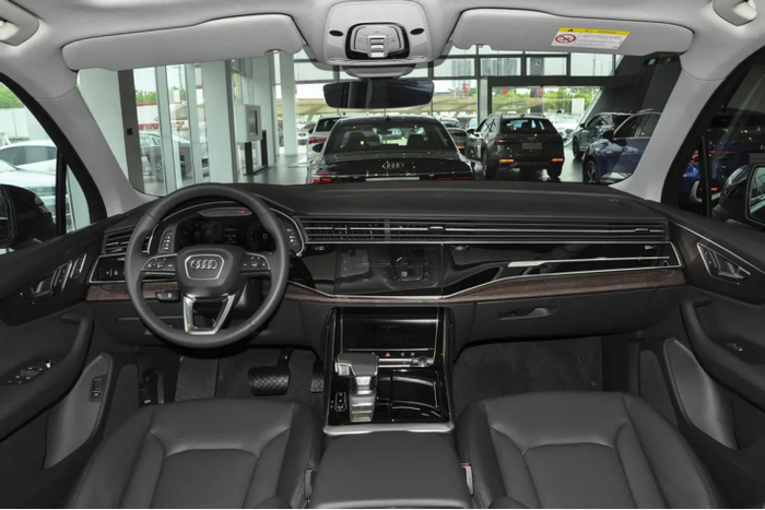 奥迪Q7的内饰则是采用T型设计,辅以三联屏,相较于Q6而言没有那么强烈的科技感。木纹饰板的加入,虽然增添质感,但有点食之无味,弃之可惜,仅仅只有中控下方配备。座舱豪华感大打折扣。