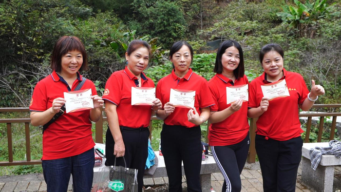 茂密的丛林间,不时传来大家发现南酸枣的喜悦之声。经过2个多小时的”寻宝“,来自广州的匡正军凭借捡拾195颗南酸枣赢得冠军,来自武汉的罗智锋和来自南昌的周士衡分别以144颗和114颗赢得亚军和季军。齐云山公司现场收购了大家捡拾的南酸枣并每人颁发劳动最光荣证书,大家捧着劳动最光荣证书,不禁感叹南酸枣长于深山,十年挂果,数量之稀少、珍贵和来之不易。