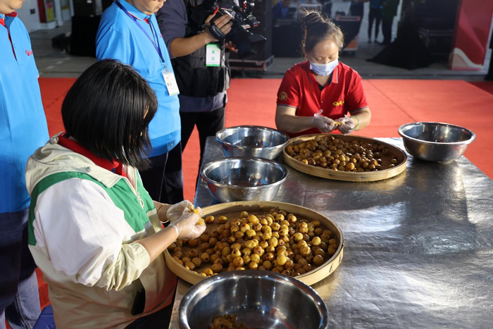 随后,来宾们参加了《挑选南酸枣》、《南酸枣剥皮》、《南酸枣取肉》、《吃货大比拼》等趣味活动。体验了传统古朴的手工挑选南酸枣、剥皮、去核取肉,还赢得了多轮现金大奖。