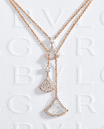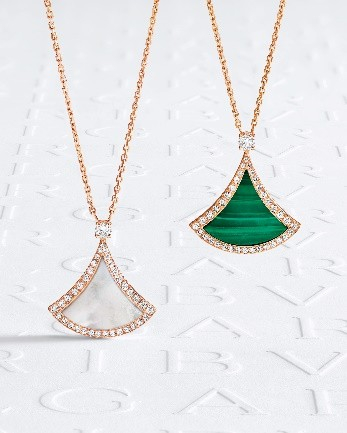 多款全新宝格丽Divas' Dream高级珠宝系列项链从品牌的深厚传承中撷取创意灵感,运用绮丽的宝石和欢愉的色彩混搭咏赞大自然之韵。项链的扇形图案镶嵌一颗赏心悦目的凸形蛋面切割宝石(从淡橙色石榴石到红碧玺,再到坦桑石、黄水晶、碧玺和紫水晶),还饰以紫水晶、绿玉髓、绿松石、珊瑚和粉红蛋白石叶子。不同风格的项链采用不同的宝石进行搭配组合。秉承宝格丽在华丽长项链和转换式珠宝制作领域的悠久传统,项链的部分链条可以拆下作为手链佩戴,并且项链本身亦提供两种不同长度,满足佩戴者的各类需求。