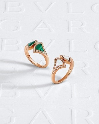 全新Divas' Dream高级珠宝系列作品兼具现代气息与雅致之美,并且多变百搭,适宜各种场合佩戴。款款佳作以隽永经典的设计、华美迷人的不透明宝石和自在欢愉的风格礼赞现代女性的独特魅力。全新Divas' Dream高级珠宝系列作品集中展现了宝格丽在运用明艳宝石方面的深厚造诣,生动演绎了自然界臻美宝石的微妙细节、丰富纹理和所承载的丰沛情感。得益于精湛的切割工艺和深植于罗马传承的著名细工镶嵌技艺,每一颗宝石巧妙镶嵌于精雕细琢的扇形元素上面,呈现浑然一体的美感。