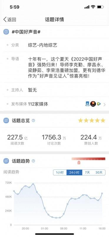 作为浙江卫视的老牌综艺节目,好声音尽管已经走过了10个年头,但是该节目自播出以来话题不断。本季刘德华作为好声音见证人以及在总决赛的惊喜亮相,热度再次攀升。截至10月31日,#中国好声音#微博主话题阅读次数达227.5亿,讨论次数达1756.3万,在全国掀起了一轮关注热潮。