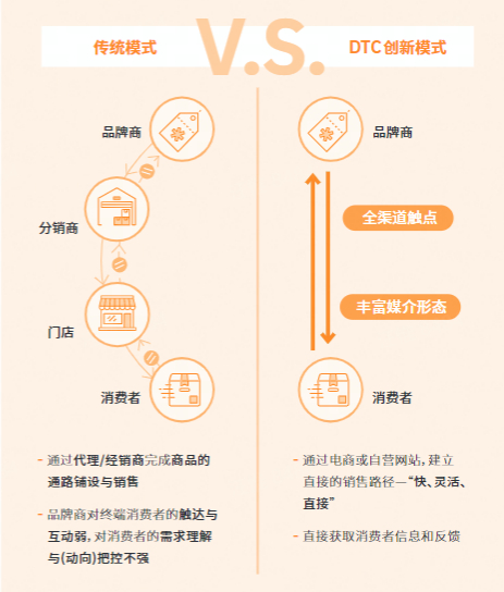 其中具体提到:“DTC商业模式让初创品牌凭借创新与服务来获得竞争优势,随着DTC新品牌的蓬勃发展,传统品牌也加入了这一波DTC转型浪潮保持竞争力。”