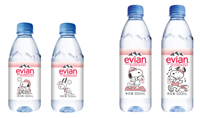 2022年10月, 依云与美国经典动漫形象史努比携手推出全新联名款产品。当源自法国阿尔卑斯山的依云饮用天然矿泉水,遇上懂得生活哲学的史努比,两者共同推出四款设计包装,生动呈现水在日常生活中扮演的多元化角色,引领更多人享受由依云水开启的品质生活,追求自然、健康的生活方式。
