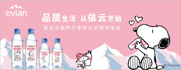对高品质的追求和对自然纯真的生活哲学的崇尚,造就了依云与史努比的相遇。通过与经典漫画形象的联名合作,依云展现了品牌对于自然、健康的生活理念的倡导,凸显其纯粹天然的产品理念。源自法国阿尔卑斯山的依云,始终致力于通过优质的产品和服务,带领大家养成更健康的饮水习惯。在未来,依云也将持续通过更加多元化的表达形式,传达健康积极的生活态度,增添生活的质感。