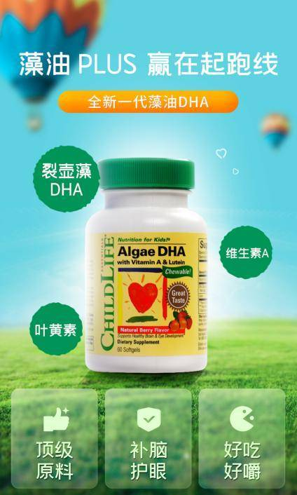 DHA是孩子婴幼儿时期眼脑发育的关键营养,本次品牌主推日上,ChildLife新一代藻油DHA产品藻油PLUS也给众多消费者带来了更诱人的福利。