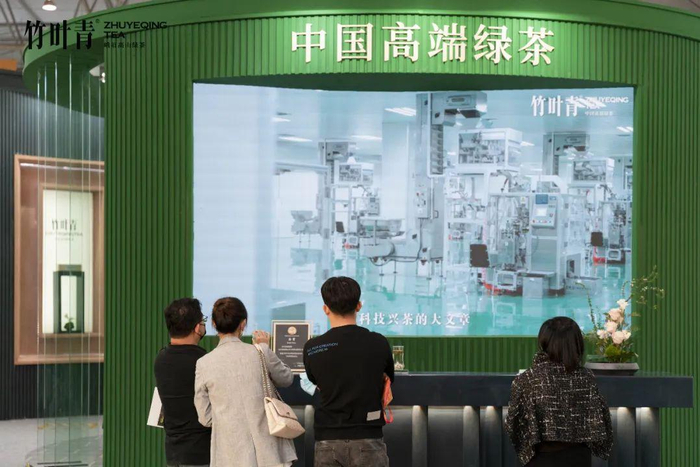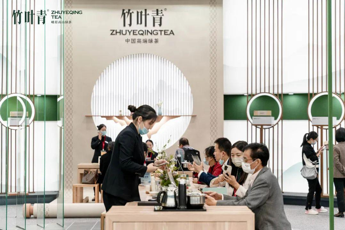 本次竹叶青®在四川茶博会的展示区域拥有历年来最大规模,以主人翁姿态迎接来自各地区领导、各领域专家及各界爱茶人士的视察和关心。竹叶青®作为四川茶叶的明星代表,让嫩栗鲜香、鲜爽回甘的峨眉高山绿茶深受好评;同时作为中国茶行业的龙头企业,生动叙述了二十余年坚守品牌与品质发展的历程,让更多人感受到中国高端绿茶领导者的品牌魅力。