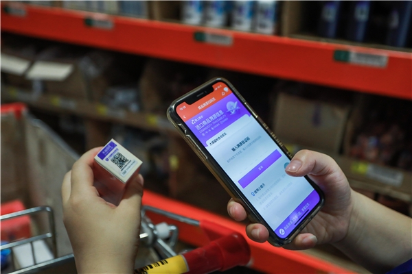 经过核验的商品,会进入溯源码覆盖环节。根据不同批次商品对应批次二维码在双重校验后,工作人员会给每一件商品的外包装上粘贴专属的溯源码。有了这张证件,进口商品才可以正式上架和出库。