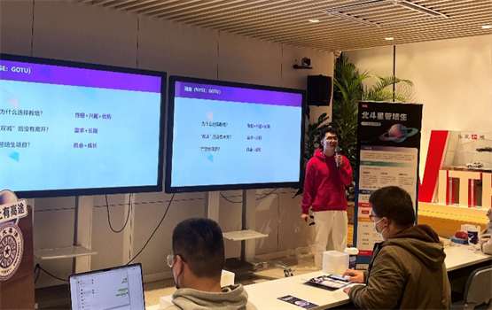 最后,北斗星管培生代表汤雪健通过个人经历,给即将毕业的学弟学妹现身说法,他介绍说,自己于2021年毕业加入高途,目前在高途已经明确了自己的长期职业发展方向,并已取得了一定的成绩,也为公司创造了一定的价值。