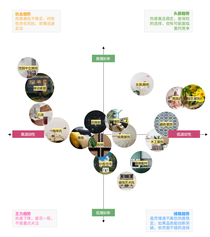 新常态下,空间的“分类”和收纳解决方案成为居家刚需,家居收纳社交媒体对话量增长率达185%,拥有广大市场。同时,人们对花园和户外空间也产生了持续的兴趣,户外装饰社交媒体对话量增长率达125%。受季节变化影响,舒适的壁炉和⽓氛照明成第四季度的热门需求。此外,过去一年有一个值得关注的高增长趋势——价格低廉的“微型”住宅和移动住宅,经改造成为精致的家居空间广受消费者关注。微型、小型住宅为消费者提供了⼀个更快捷、可负担得起的房屋所有权选择。而移动住宅作为⼀种私人的、轻松的度假新选择,让推崇“在路上”的理想生活方式的人们开始重拾对它的兴趣,相关的造型和装饰也火爆了起来。