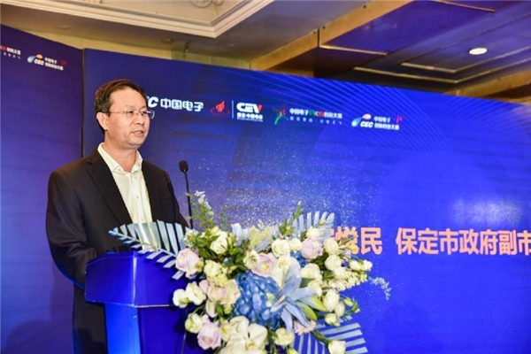 国务院国资委科技创新局副局长靳力、保定市委书记党晓龙、中国电子总经理助理朱立锋,保定市委副书记、市长闫继红出席大会并致辞,中国工程院院士沈昌祥、中国工程院院士谭建荣分别作主题演讲。