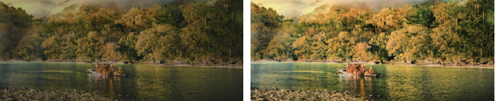 北京上添影视传媒有限公司知名调色师张亘分享,在《长津湖》HDR Vivid 版本调色中,剧中角色伍千里归家的戏份,相比SDR 版本,在对比度、亮度等方面都更接近主创团队理想的画面呈现效果。更高的对比度也使画面更具有“结实”的感觉,如伍千里乘船从画左进入的全景镜头。