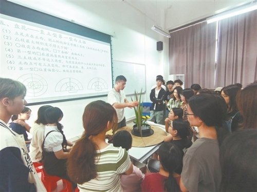 这样一位风云学长的事迹,早已在众学弟学妹中口耳相传,如今,走上讲台的黄仔入职不过两个月时间,已成为学生仰慕的对象。由于他的课程接地气,本人水平也很高,所以其讲授的花艺课深受学生欢迎。