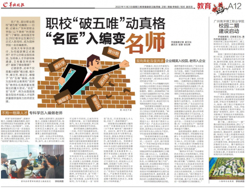 番职院党委书记林洽生早前接受羊城晚报记者采访时表示:“在适应产业发展的技术技能上,产业精英有独到之处。名师与名匠互相补充,共同形成整个教师队伍的合力,来提高人才培养质量。”