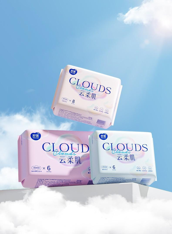 云柔肌卫生巾 已获抗菌认证标志,以专业抑菌+1.0D超细纤维面层+中凸贴体设计,主打专业抗菌、精准防漏,柔软安全呵护女性经期健康。