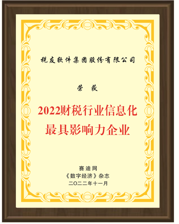 税友荣获“2022财税行业信息化最具影响力企业”大奖 彰显财税信息化龙头成色