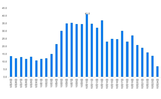 从“睡衣/居家服”单品每日新增销量趋势发现,10月2日至10月13日单品销量有一个大幅增长,其中10月10日巅峰日销量41万件;推测销量大幅增长的原因是由于这段时间内全国多数地区降温,消费者对于保暖家居服的需求直线上升。