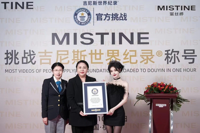 值得一提的是,31日晚,Mistine蜜丝婷底妆大使鞠婧祎更是“空降”品牌抖音直播间,与5.7万人共同见证吉尼斯记录时刻,成功助力品牌产品出圈。