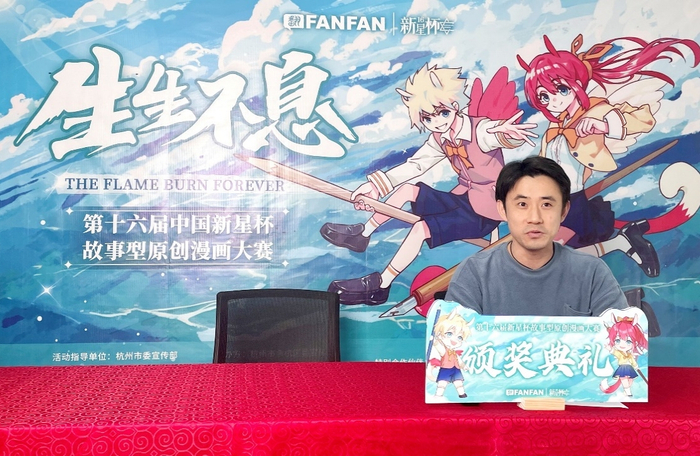 在当天的颁奖典礼最后,翻翻动漫集团总裁沈浩先生宣布了2023年度第十七届新星杯故事型原创漫画大赛的征稿正式启动。