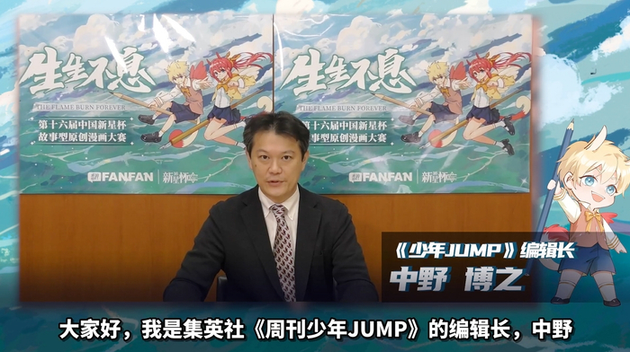 当日下午,知名漫画家米沙、潇十里、赶稿某张、翻翻动漫集团总裁沈浩等嘉宾亲临颁奖典礼现场,为大赛各项大奖颁奖。新星杯还邀请了集英社《周刊少年JUMP》编辑长中野博之为颁奖特别录制了视频,亲自为大家揭晓了集英社奖与今年特别设立的JUMP 编辑部特别奖。